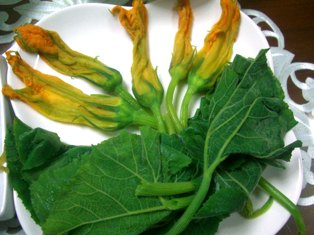 호박꽃 튀김 / 호박꽃 전 / 호박꽃 탕 / 호박꽃 쌈 / 호박말이 쌈밥 / 호박순 나물