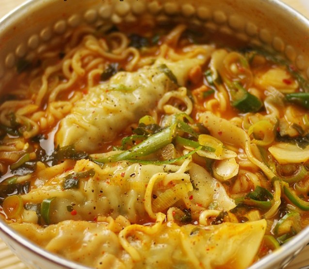 끓인 후 스프 - 만두 - 라면 - 야채 - 고춧가루 순으로 넣어가며 끓여준다.