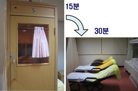 옷차림을 하고 혈압과 체중을 기본적으로 측정하는 것부터 시작된다. 그런 다음 내부 온도가 60℃로 유지되는